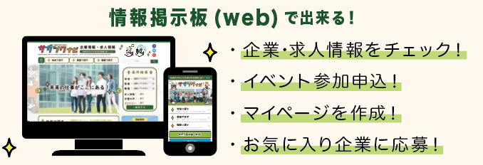 サガツクナビは、入学から就職、そして内定までをサポートする地域密着型の就職支援サービスです。経営者、採用担当者、先輩社員などとの交流により、情報、知識、経験値などを得ることができます。想像以上の自己成長により、就活での内定はもとより、就活後も活躍できる基礎的な思考や人間力が身に付けられます。